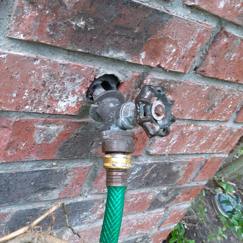 Plumb Shield Plumbing LLC removed brick and mortar to access a 4-inch frost-proof hose bib and installed a new frost-proof hose bib provided by the company in Arlington, Texas.