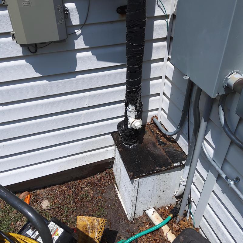Plumb Shield Plumbing LLC cleared a blocked main sewer line from exterior cleanouts on the side of a home in Azle, Texas. Technicians used professional rooting equipment to restore proper drainage and prevent future flow issues.