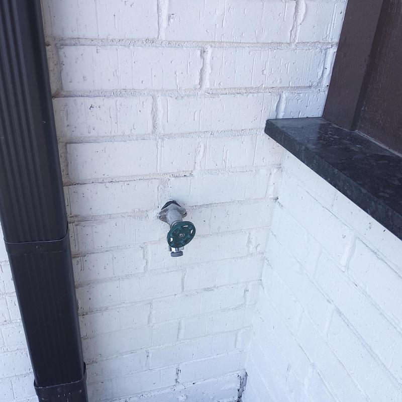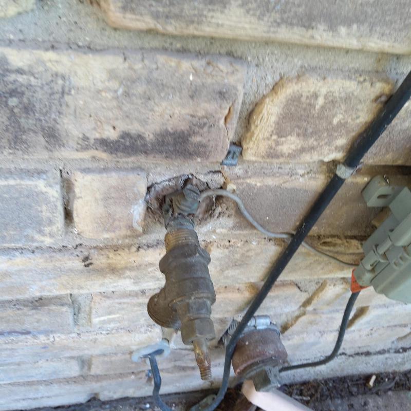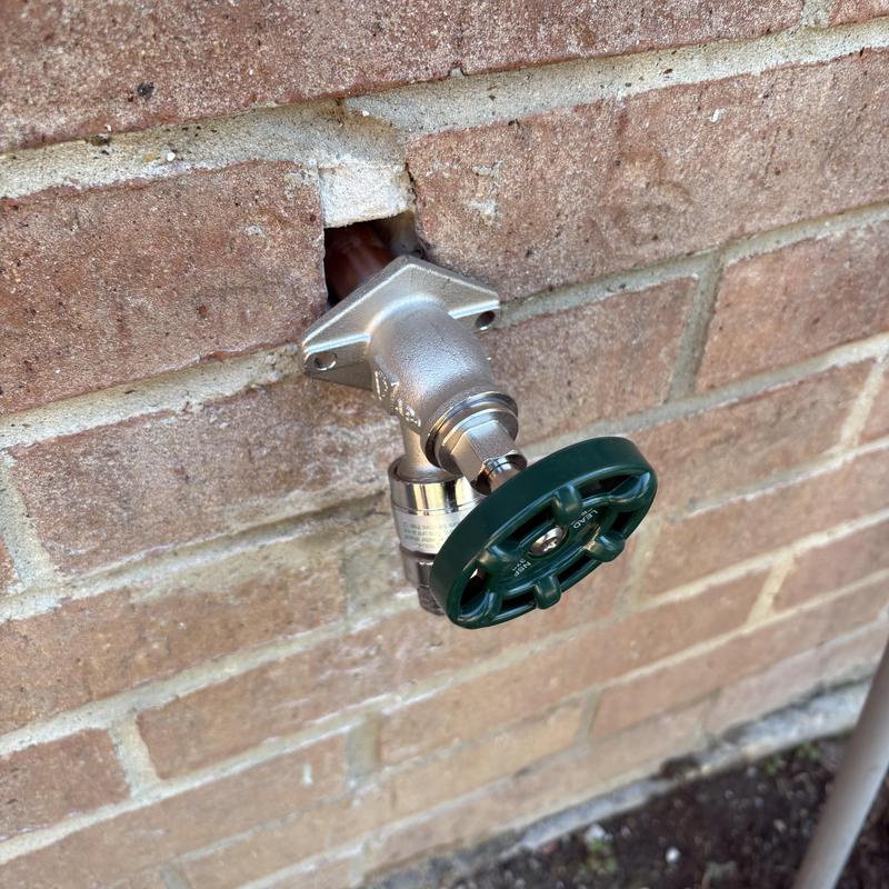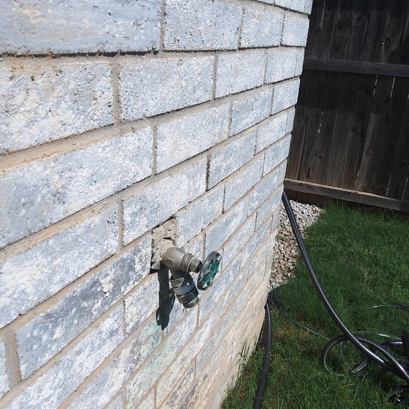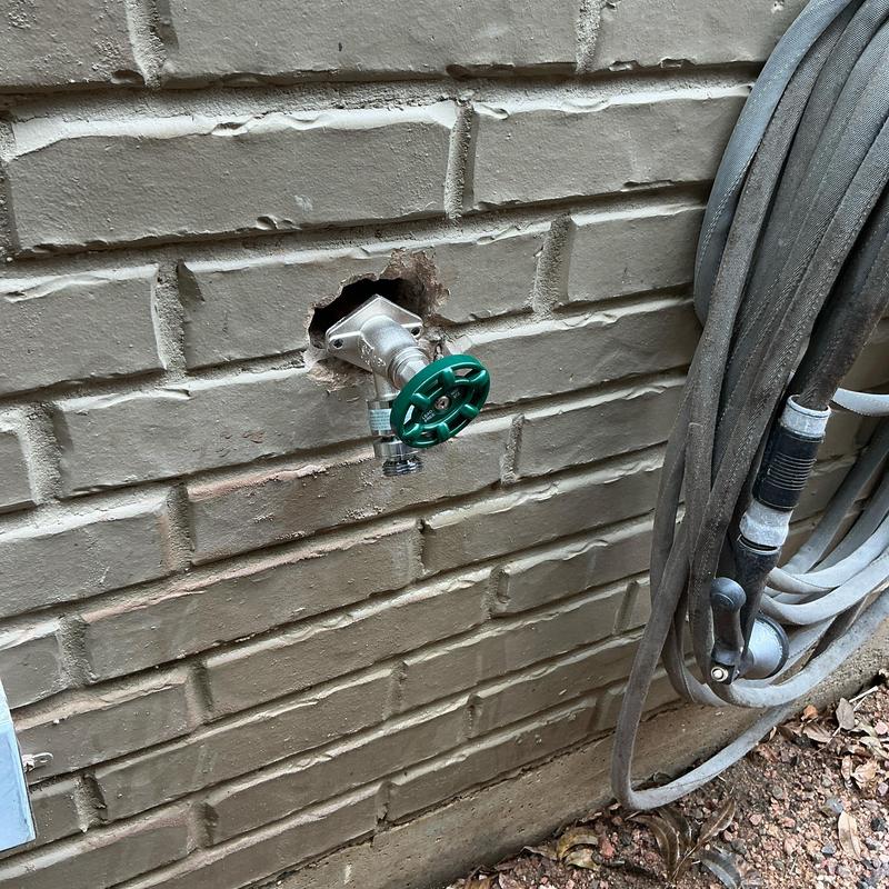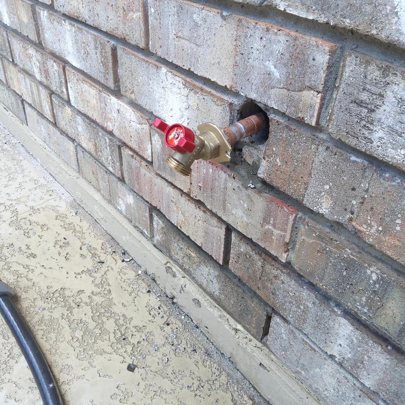 Plumb Shield Plumbing LLC removed brick and mortar to access a 4-inch frost-proof hose bib and installed a new frost-proof hose bib provided by the company in Arlington, Texas.