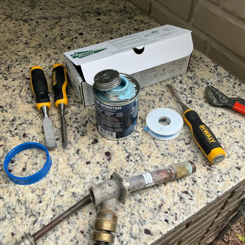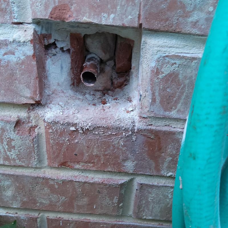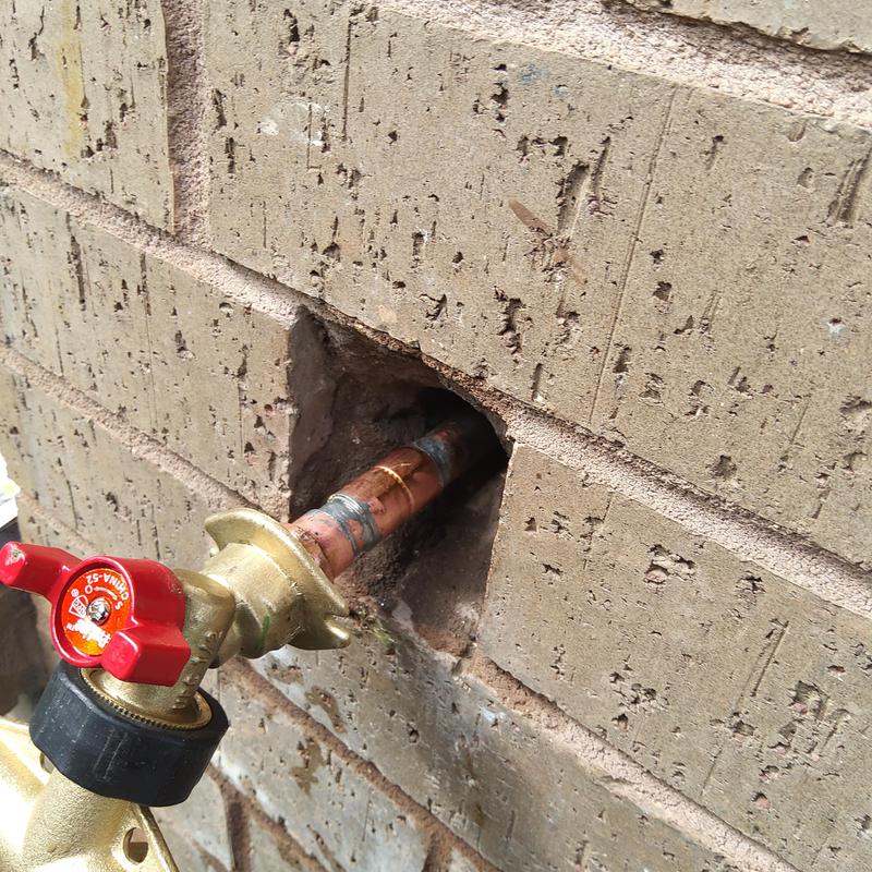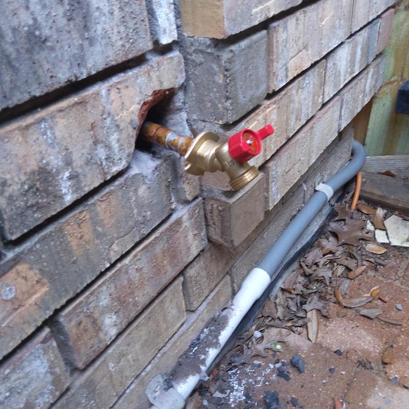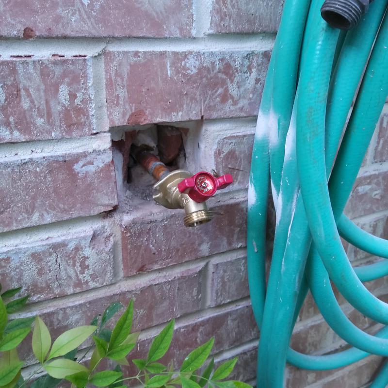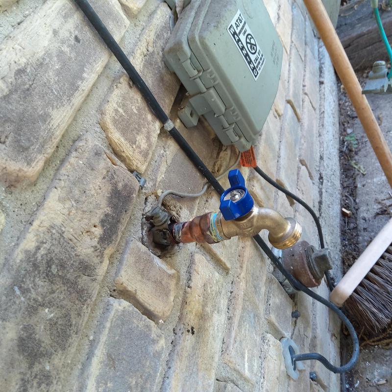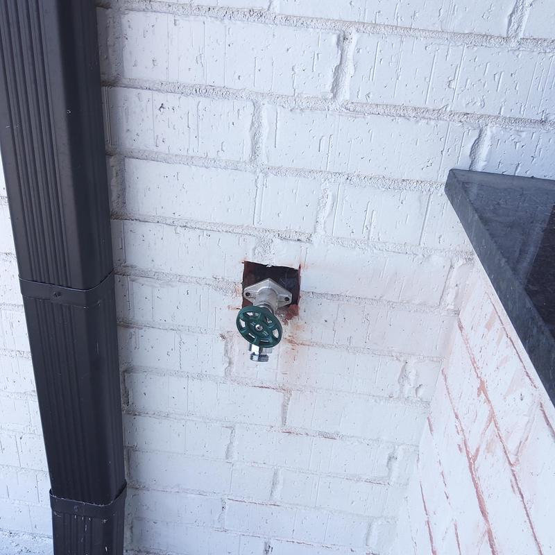 Plumb Shield Plumbing LLC removed brick and mortar to access a 4-inch frost-proof hose bib and installed a new frost-proof hose bib provided by the company in Arlington, Texas.