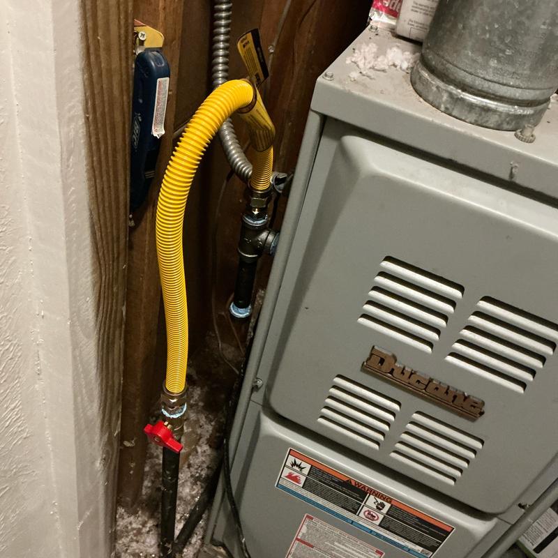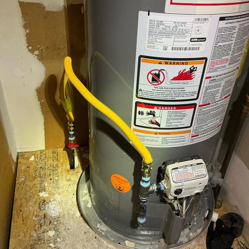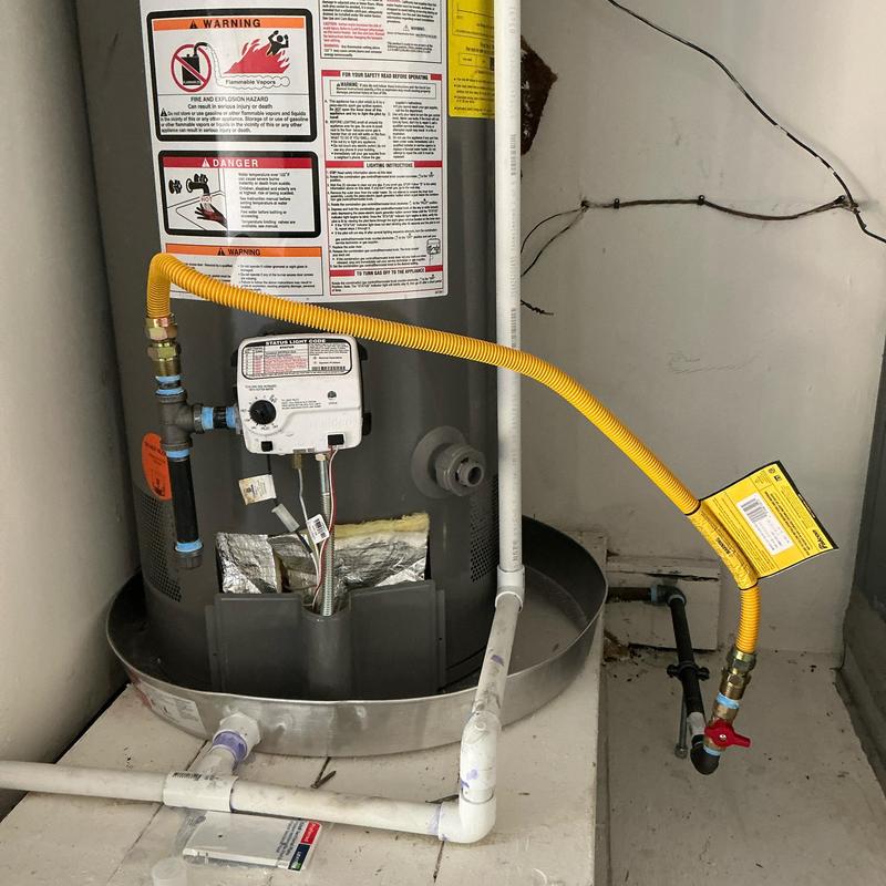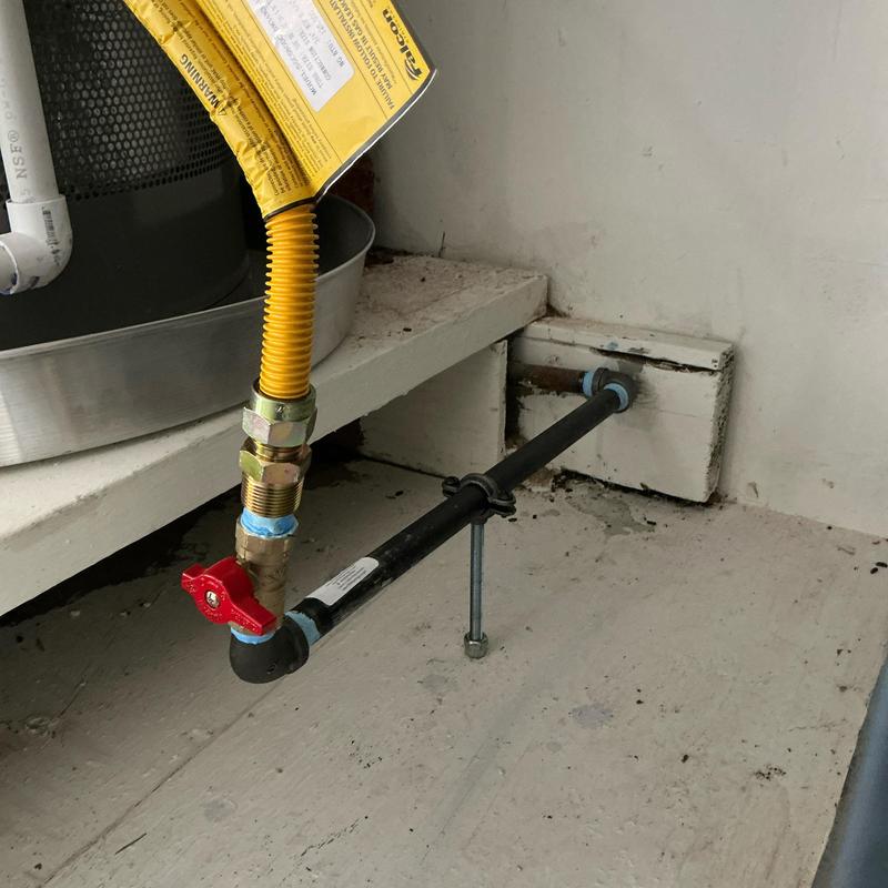 A technician in Arlington, Texas, updated a gas line by installing a drip leg and a new supply flex line to meet current code requirements. This service improved the safety and compliance of the gas system.