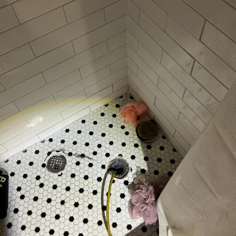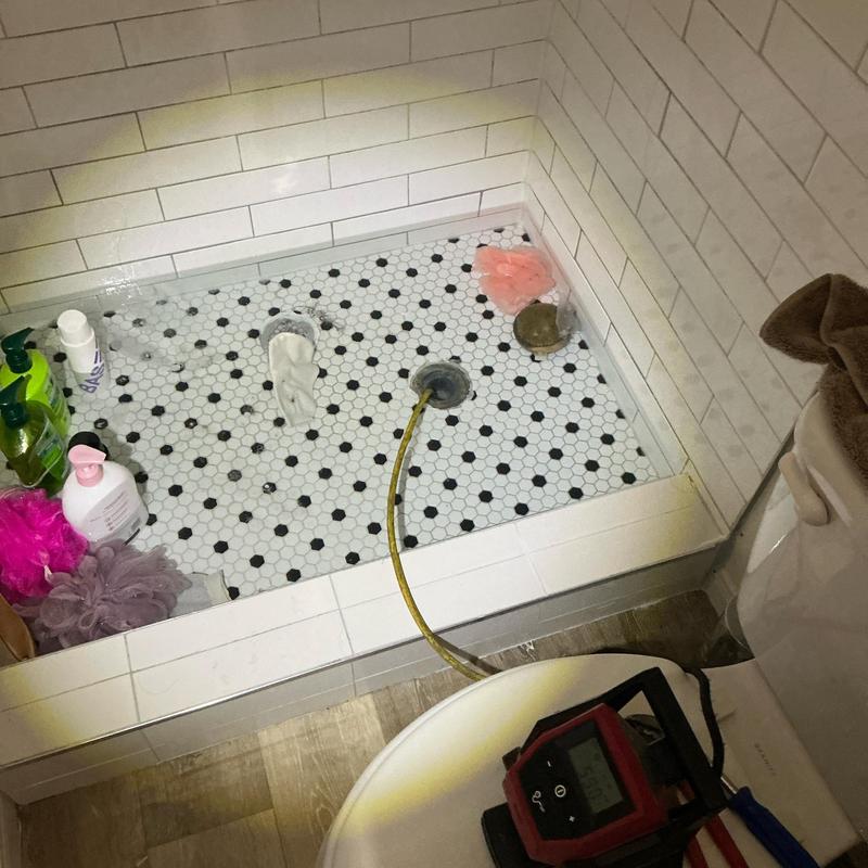 A plumber in Fort Worth, Texas installed a test ball and drained a filled shower pan to check for leaks in an upstairs restroom. This service helps identify potential water issues before they cause damage.