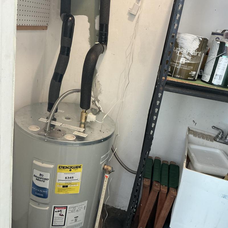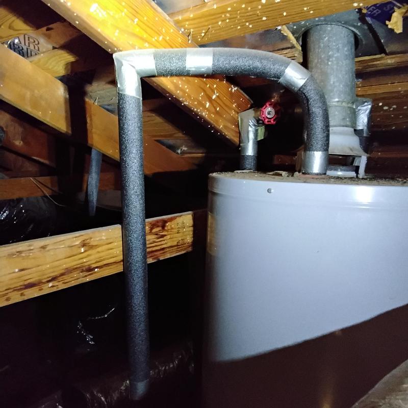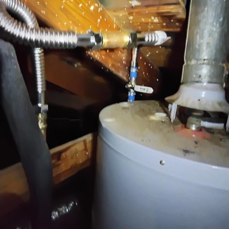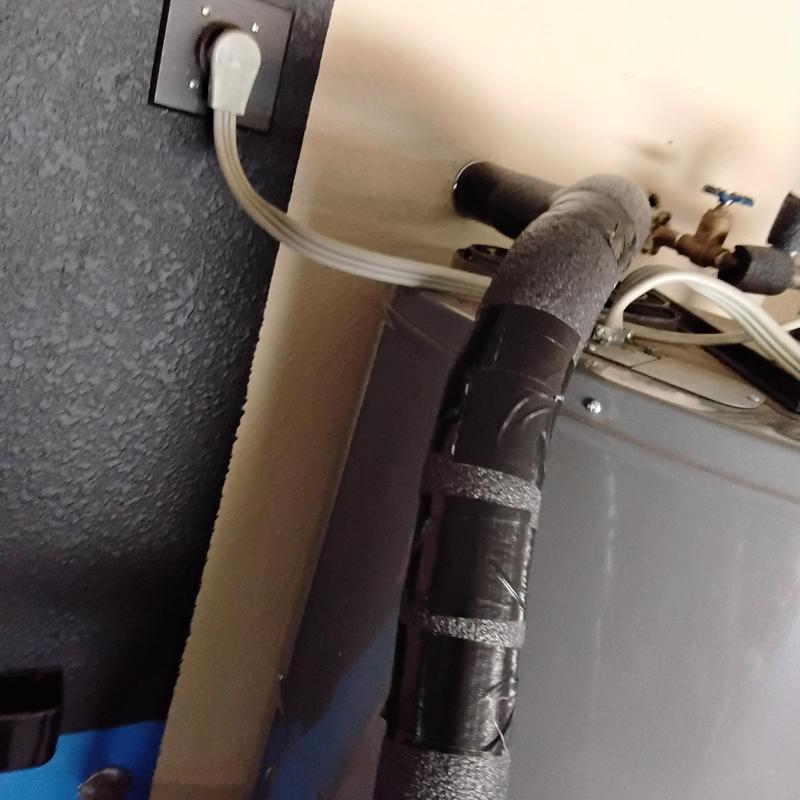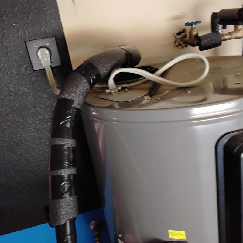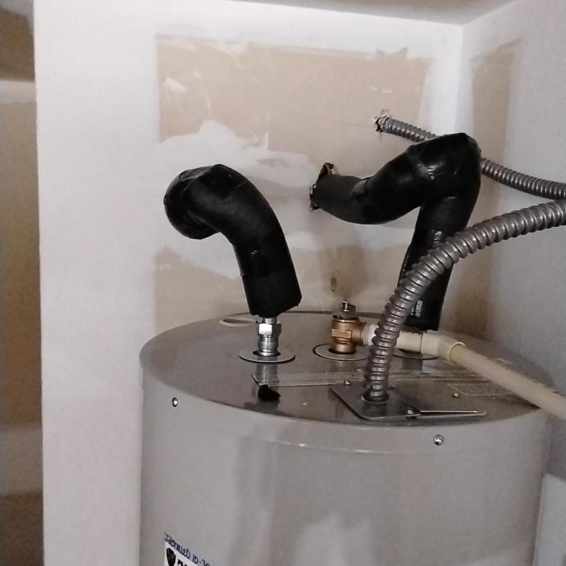 PLUMB SHIELD PLUMBING LLC completed the installation and insulation of piping connected to a water heater in Tempe, AZ. The work included securing flexible water lines, adding foam insulation wrapped with black tape, and fitting a stainless steel braided connector to the heater's water supply line.