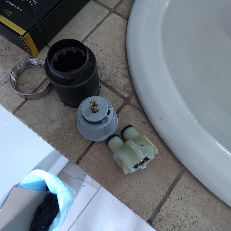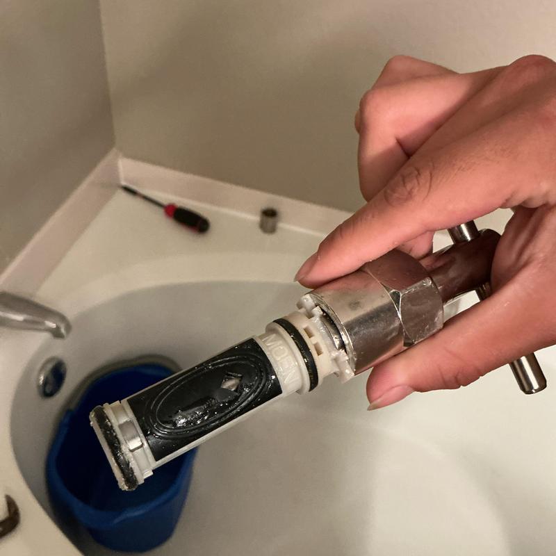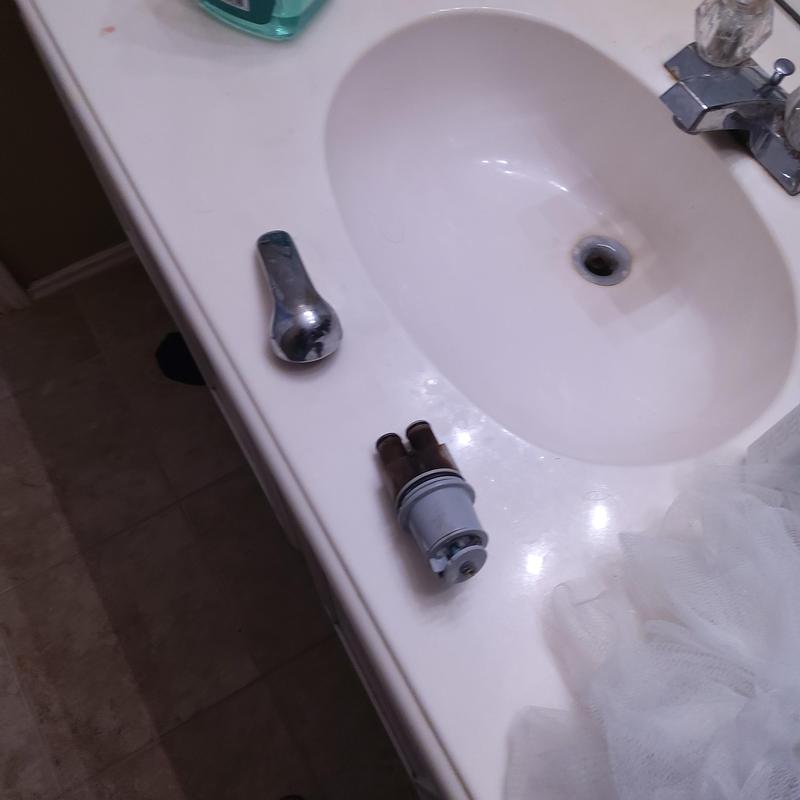 A plumber in Arlington, Texas replaced a worn single-handle cartridge controlling hot and cold water in an upstairs bathroom, restoring precise temperature control and steady water flow for improved daily use.