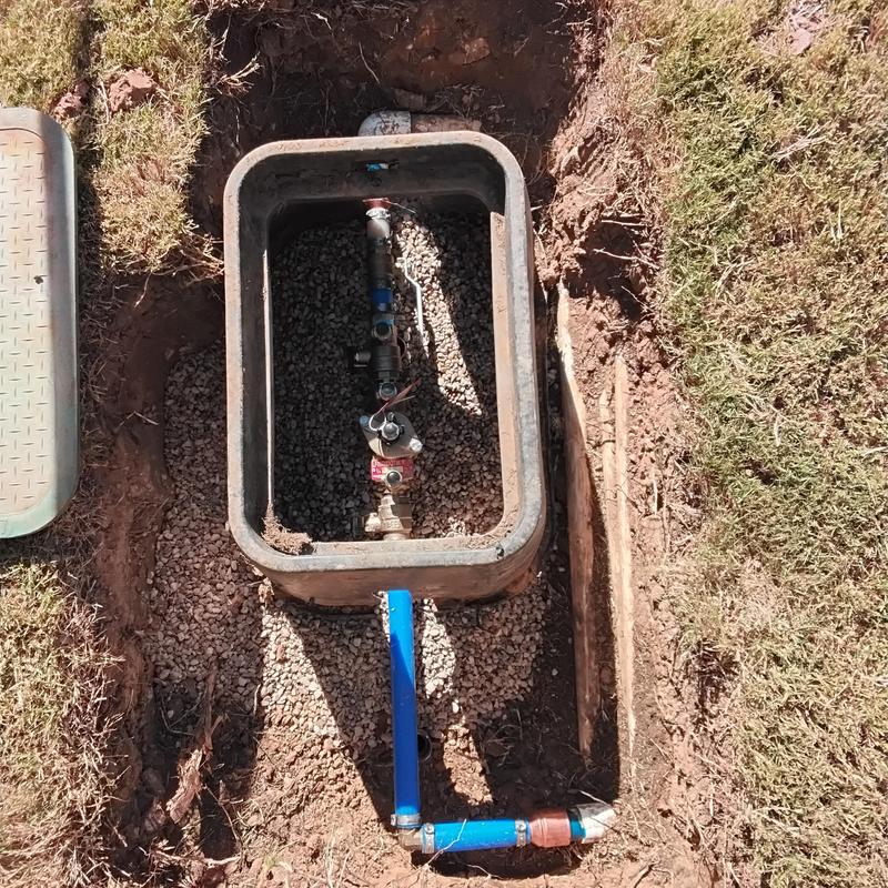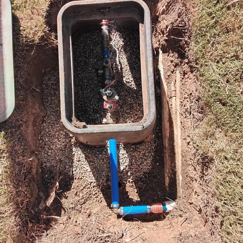 Plumb Shield Plumbing LLC replaced a one-inch double check valve in the front yard of a Keller, Texas home, including installing a valve box with pea gravel, securing permits, passing inspection, and ensuring the system meets local water safety standards.