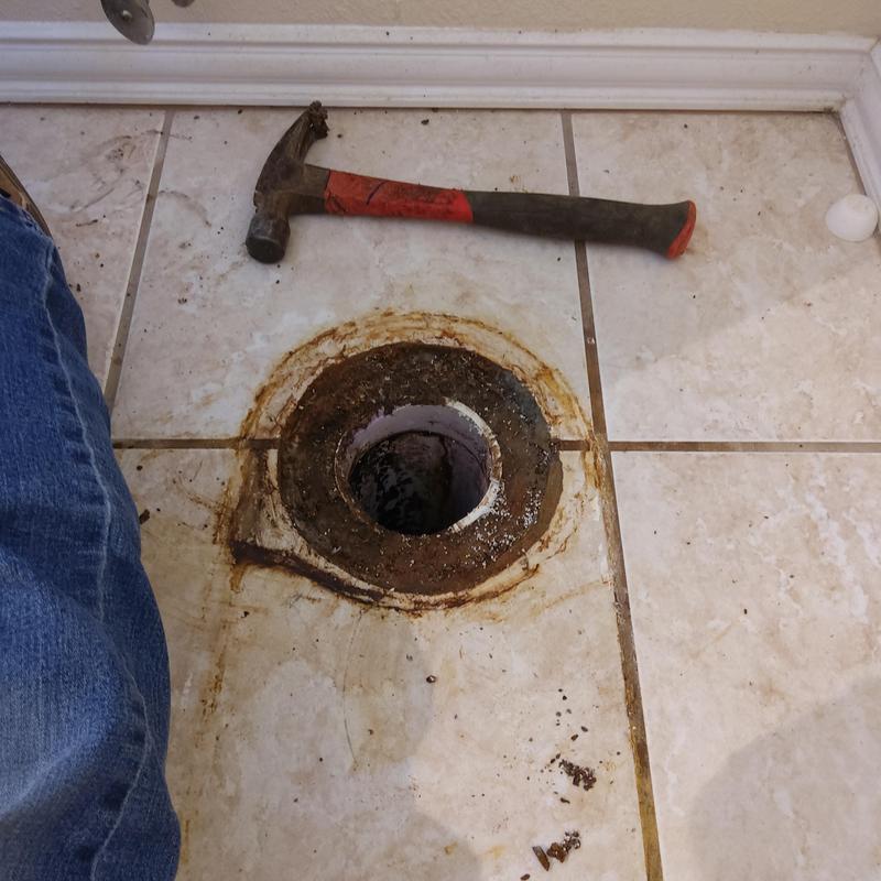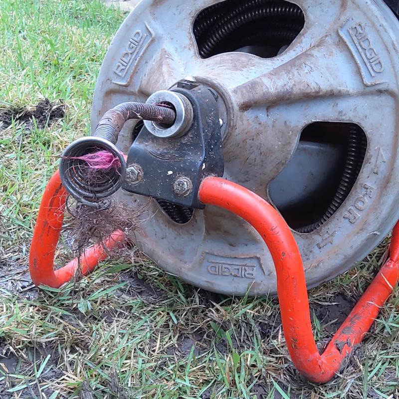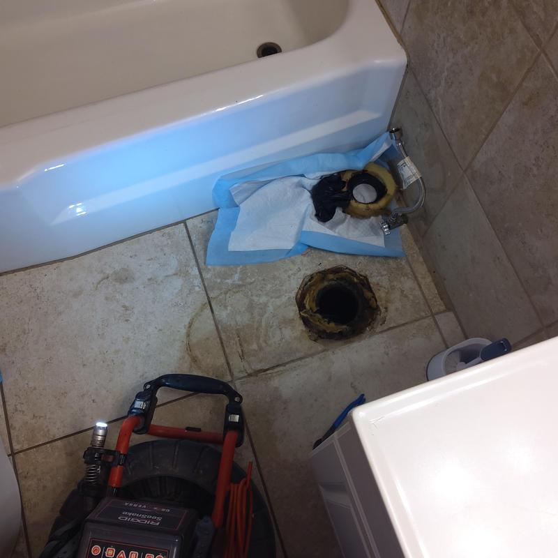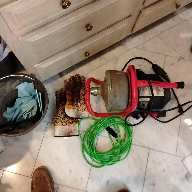 A plumber ran an electric cable through a bathroom drain to remove a blockage and improve drainage in a home in Arlington, Texas.