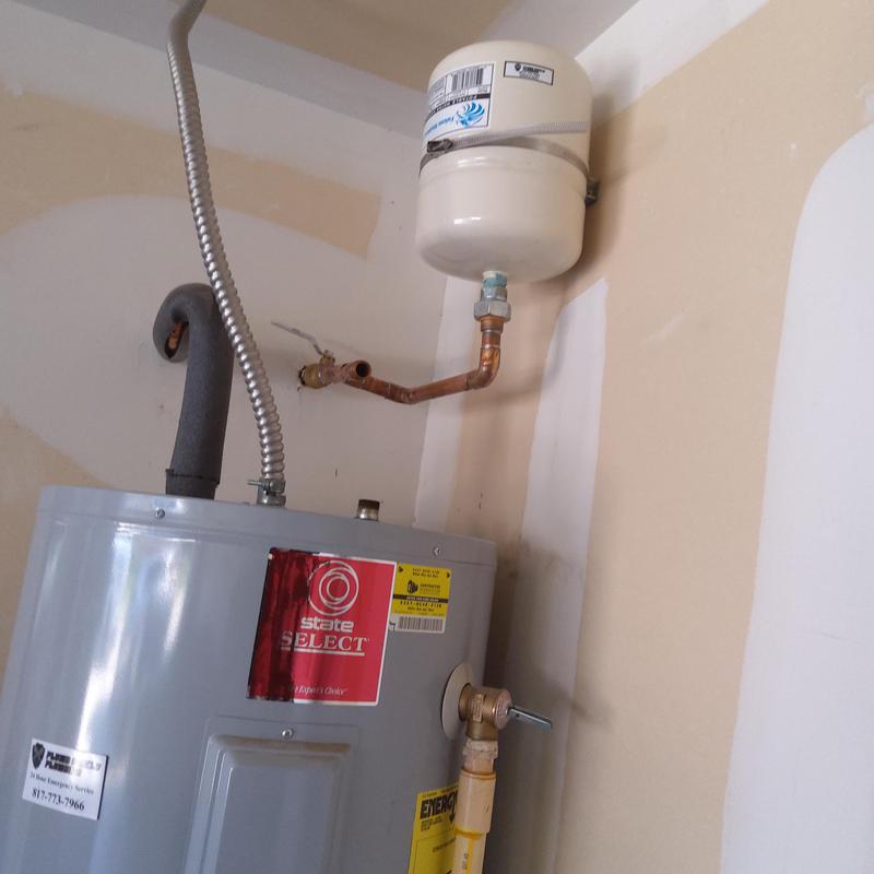 Plumb Shield Plumbing LLC installed a 50-gallon electric water heater with code-compliant upgrades and a water heater pan in Arlington, Texas. The work ensures proper function and safety for residential hot water needs.