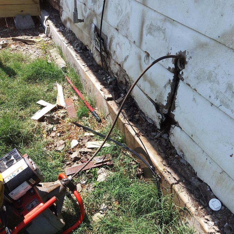 Plumb Shield Plumbing LLC cleared a blocked main sewer line from exterior cleanouts on the side of a home in Azle, Texas. Technicians used professional rooting equipment to restore proper drainage and prevent future flow issues.