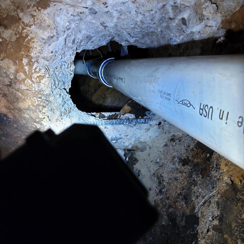 Plumb Shield Plumbing LLC repaired a three-foot section of 3-inch PVC pipe and replaced a damaged 3-inch tee that was encased in hardened debris in Azle, Texas. The team removed the obstruction and restored proper flow through the pipe.