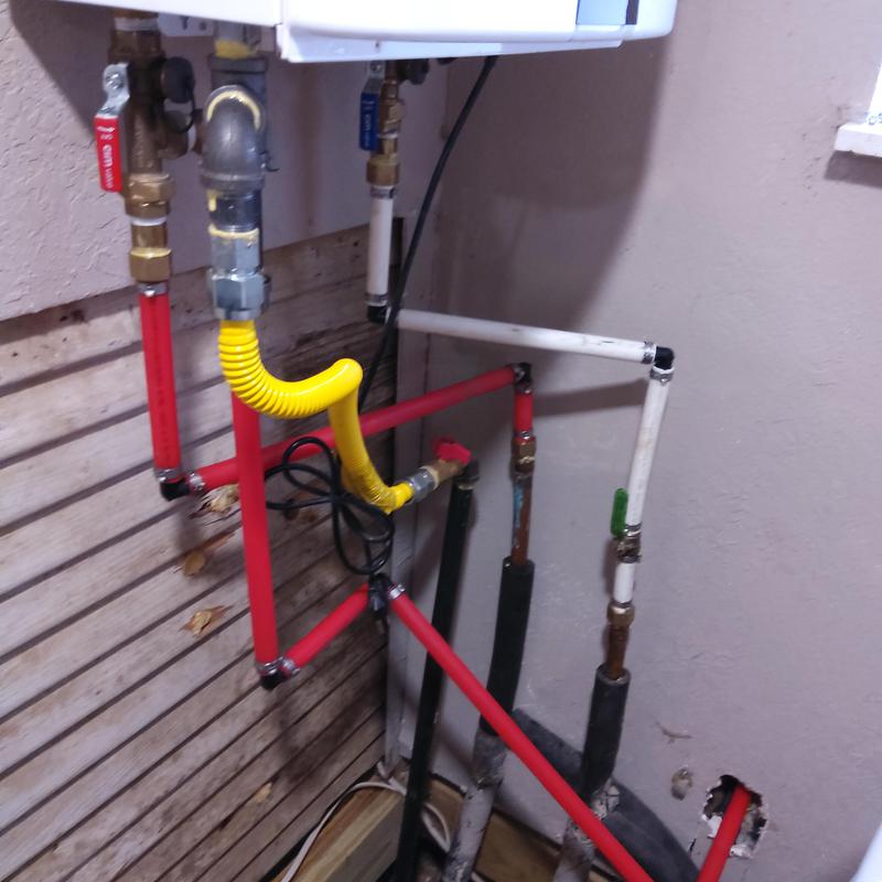 Plumb Shield Plumbing LLC completed an emergency gas leak repipe for a furnace and water heater using 1-inch piping in Haslet, Texas. The team replaced damaged gas lines to restore safe and functional service in a residential setting.