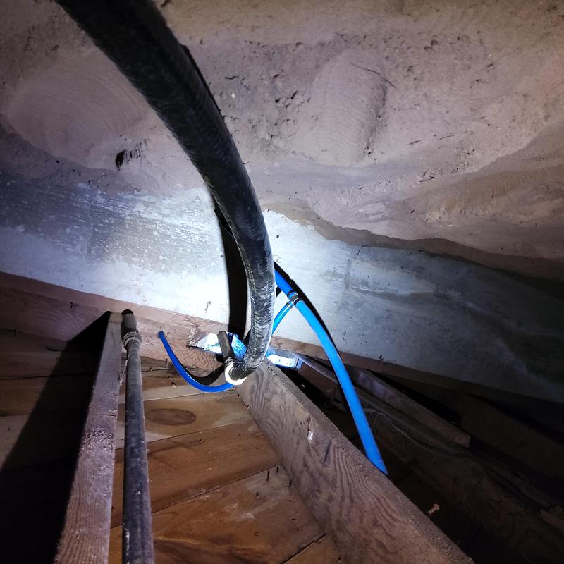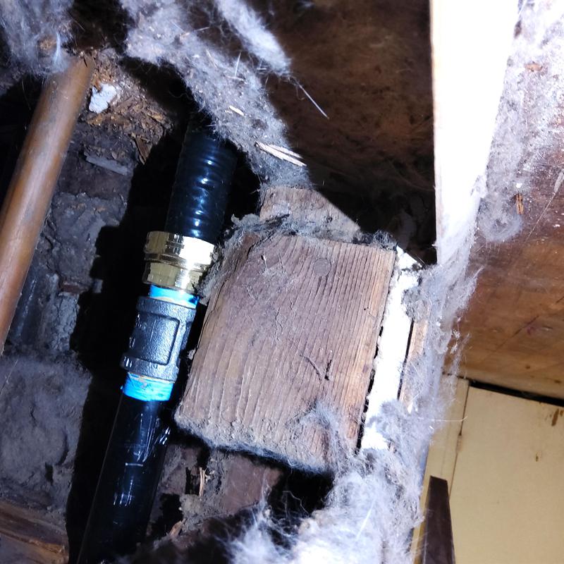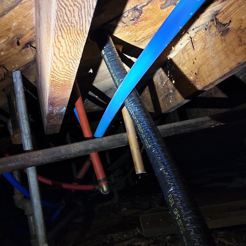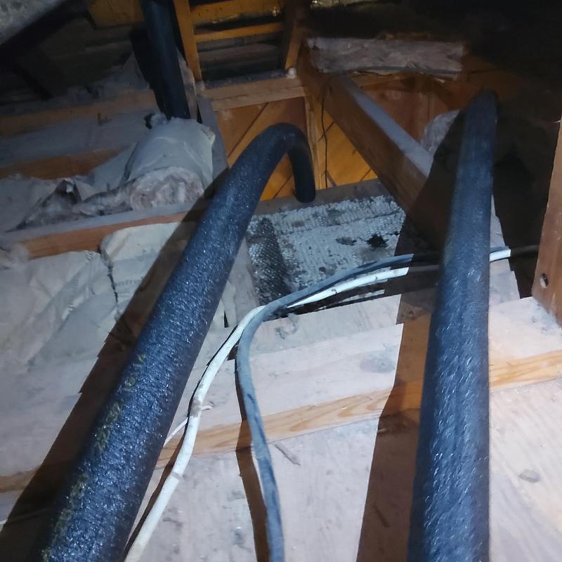 A plumber rerouted hot and cold water lines in the attic to restore cold water access for the homeowner while awaiting a water heater replacement in Arlington, Texas. This temporary solution allowed continued water use until the new unit could be installed.