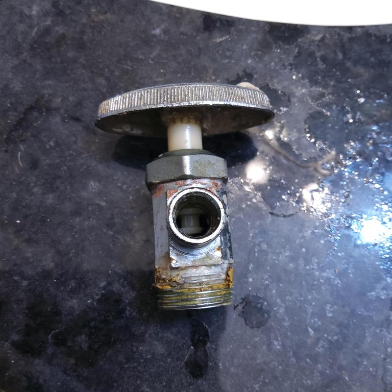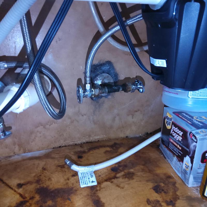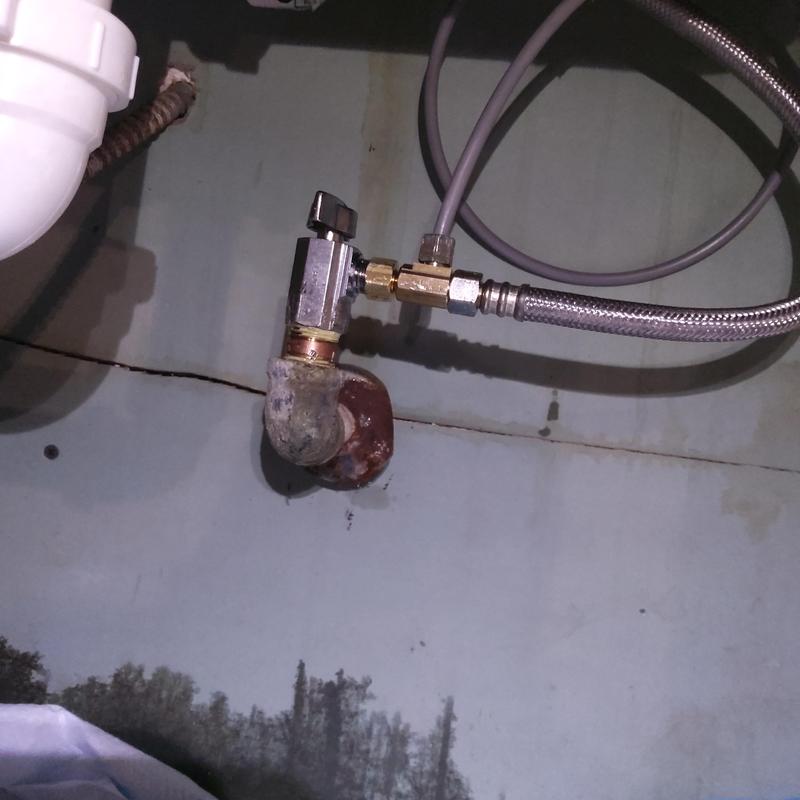 A plumber in Fort Worth, Texas replaced a damaged cold-side emergency shut-off valve under a sink with a 1/4-turn valve. This upgrade improves water control and simplifies future maintenance.