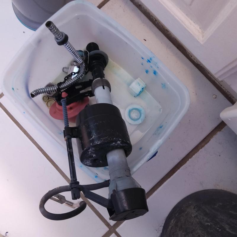 A plumber in Fort Worth, Texas removed a toilet tank and installed a new fill valve and flapper to improve flushing performance and stop leaks. This service ensures proper water flow and prevents wasted water from worn components.