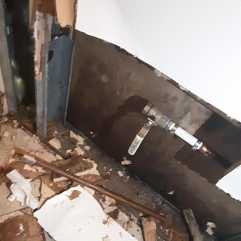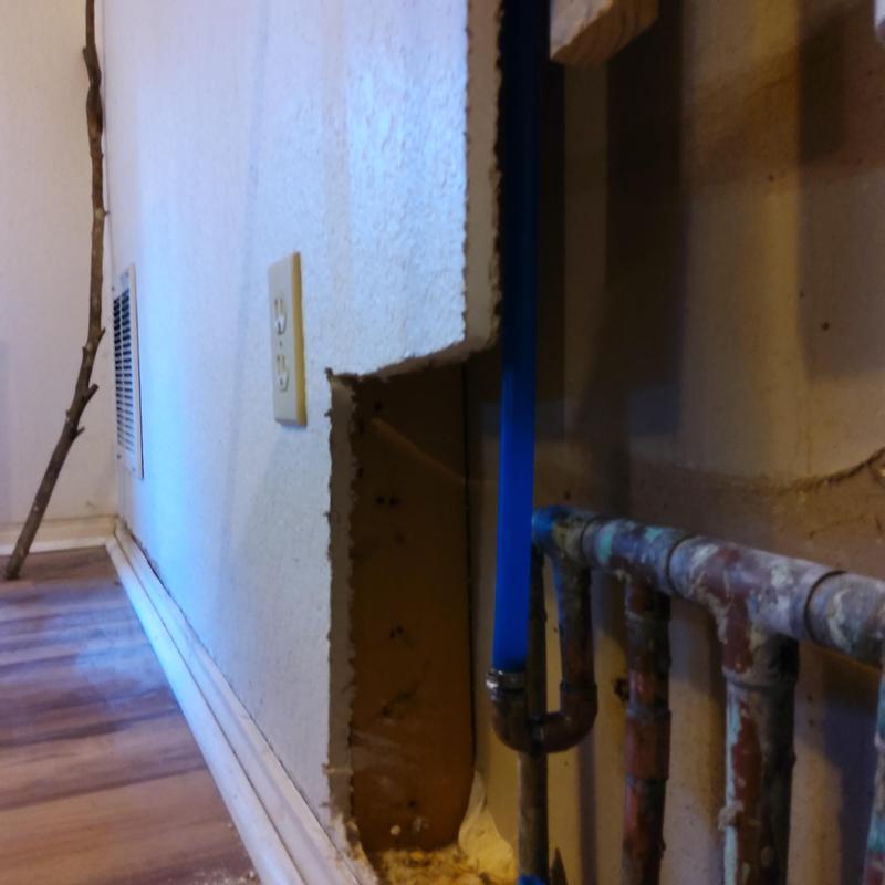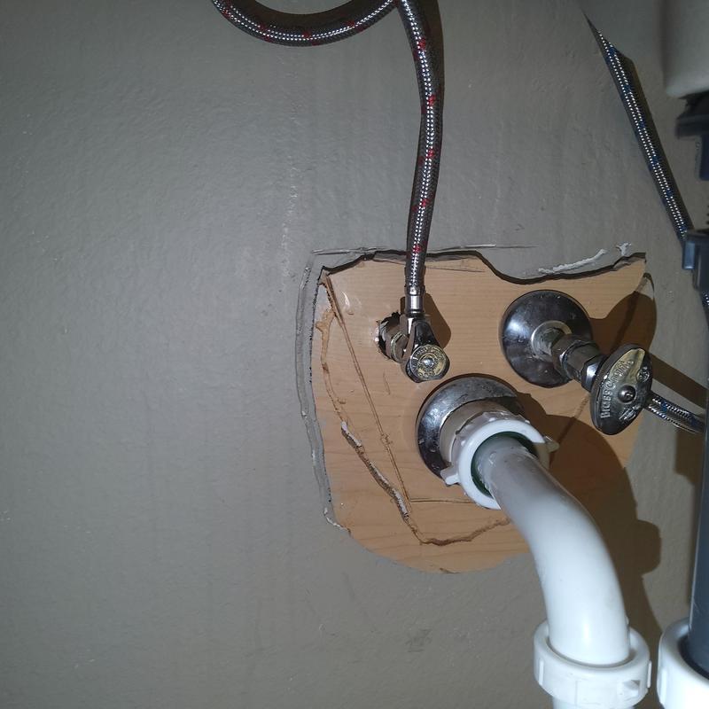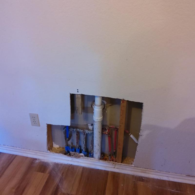 A technician moved a plumbing line into the wall, reconnected it, and replaced a shut-off valve. This plumbing repair took place in Arlington, Texas.