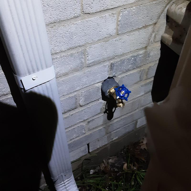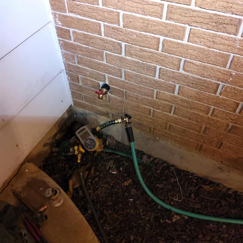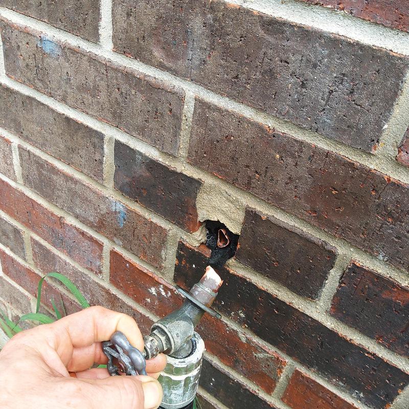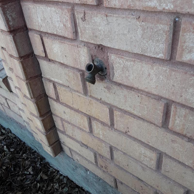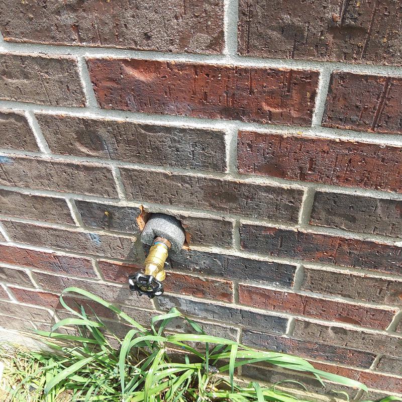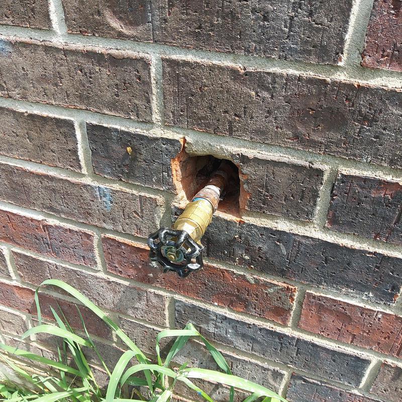 Plumb Shield Plumbing LLC removed brick and mortar to access a 4-inch frost-proof hose bib and installed a new frost-proof hose bib provided by the company in Arlington, Texas.