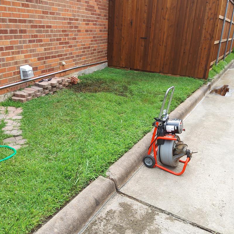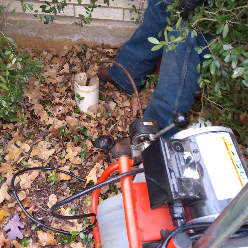 A technician from Plumb Shield Plumbing LLC ran a cable to clear a blocked sewer line through an exterior clean-out in Arlington, Texas. This service restored proper drainage and helped prevent further plumbing issues caused by line obstructions.