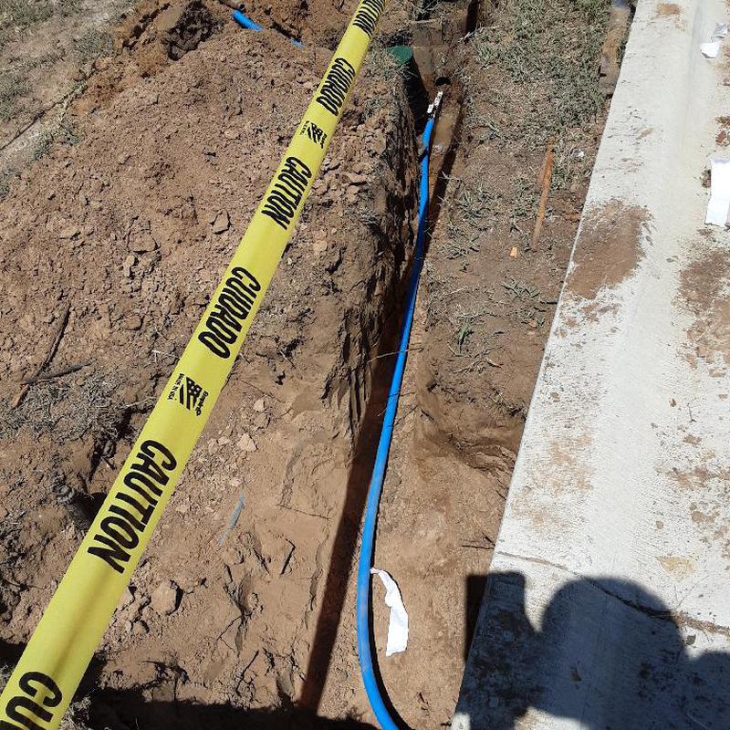 Plumb Shield Plumbing LLC replaced 70 feet of damaged water service line from the meter to the home during an emergency water leak in Kennedale, Texas. The team restored full water flow by installing a new underground pipe to prevent further issues.