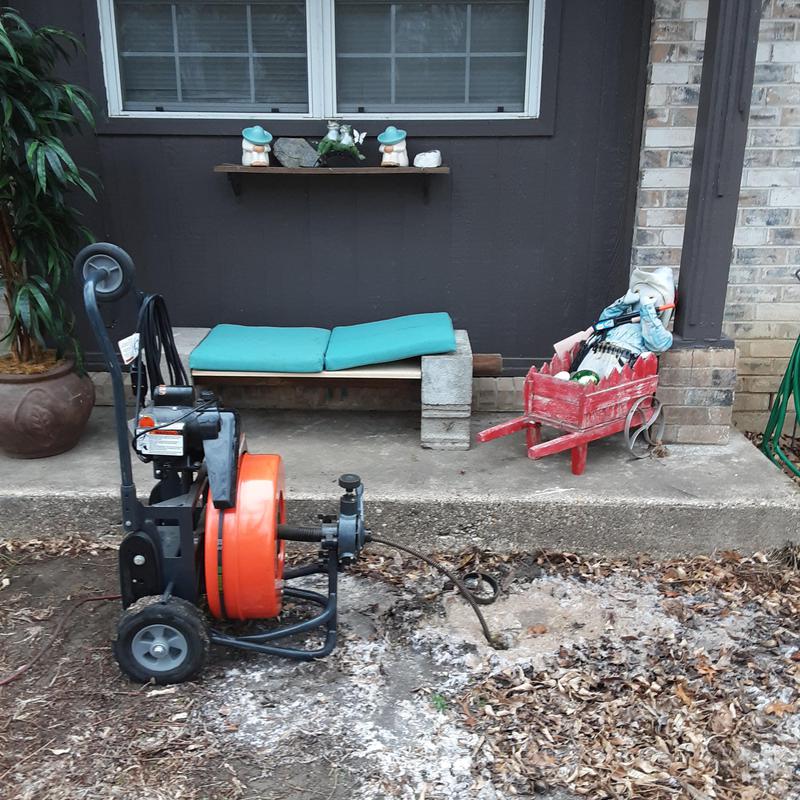 A plumber cleared a main line stoppage using an electric snake through an exterior clean-out in Arlington, Texas. This service restored proper drainage and improved plumbing system flow by removing the blockage from the main sewer line.