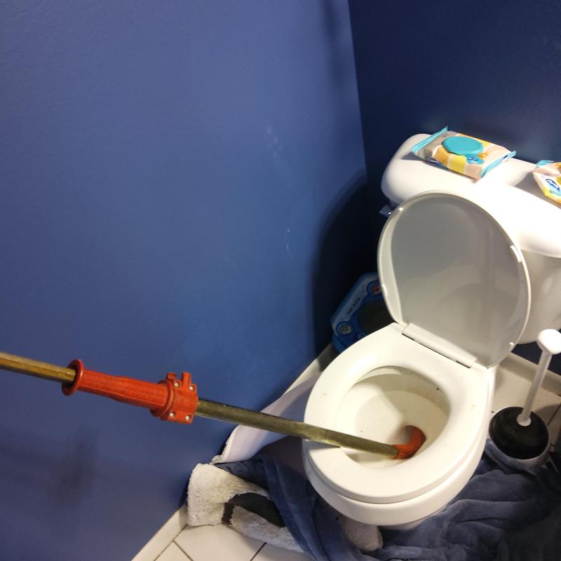 A technician cleared a toilet stoppage using a bowl auger in Arlington, Texas. The service focused on restoring normal toilet drainage by removing the obstruction with manual equipment.