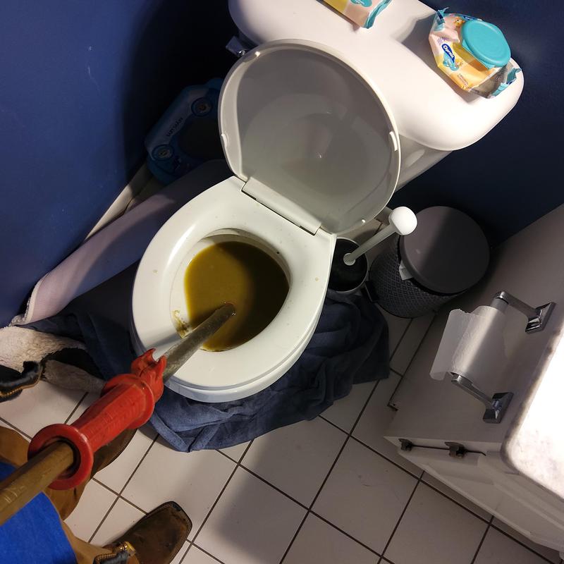 Plumb Shield Plumbing LLC cleared a clogged drain that caused a toilet overflow and restroom flooding in Mansfield, Texas. Technicians located and removed wax paper blocking the line using a snake. The drainage system now functions properly.