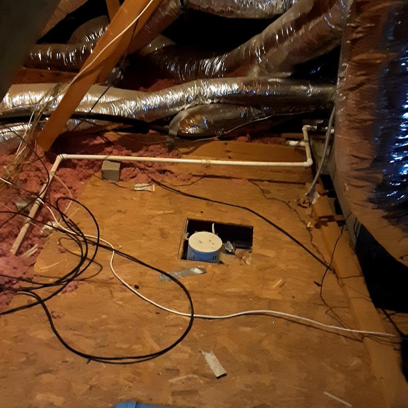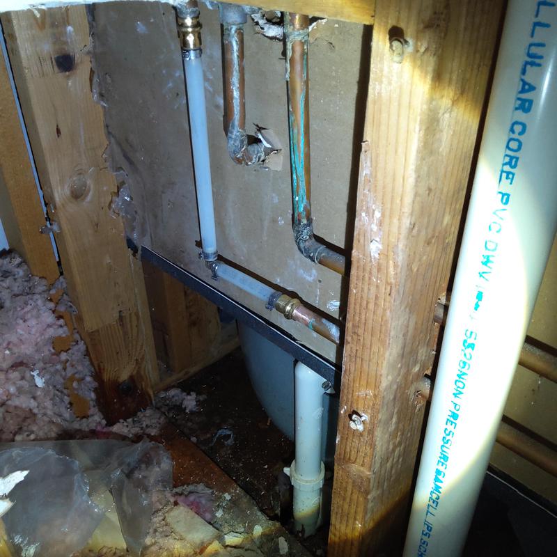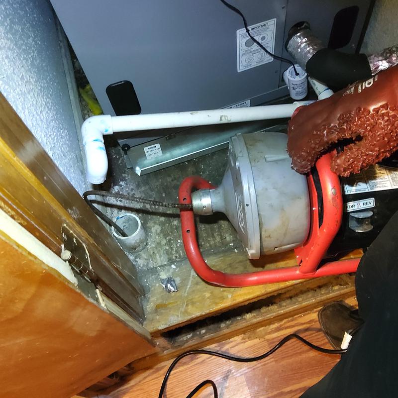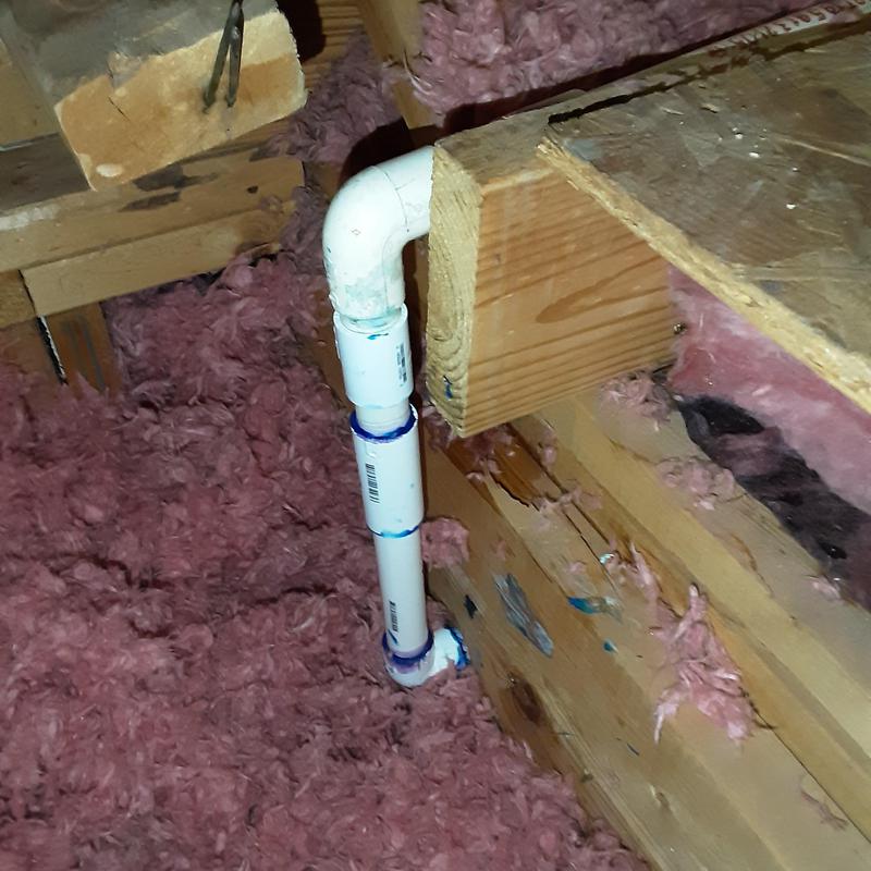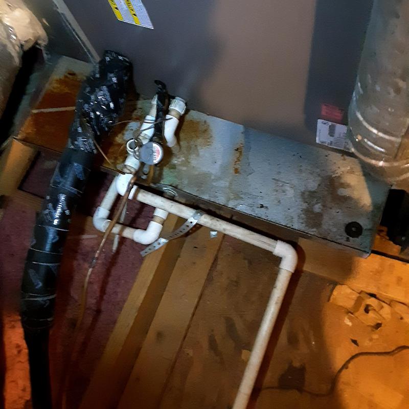 Plumb Shield Plumbing LLC repaired an A/C condensate line in an attic, upgraded the water heater pan drain to meet code, and cleared a lab faucet in a downstairs restroom. Service completed in Euless, Texas.