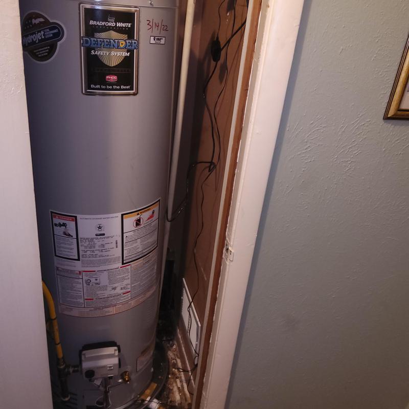 Plumb Shield Plumbing LLC replaced a leaking 40-gallon gas water heater during an emergency service in Arlington, Texas. The team removed the damaged unit and installed a new system to restore hot water quickly and safely.