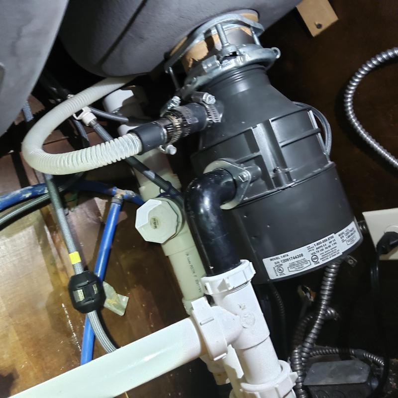 Plumb Shield Plumbing LLC replaced an old garbage disposal with a new unit in Fort Worth, Texas. The work involved removing the existing disposal and installing the new system to restore proper kitchen drain function.