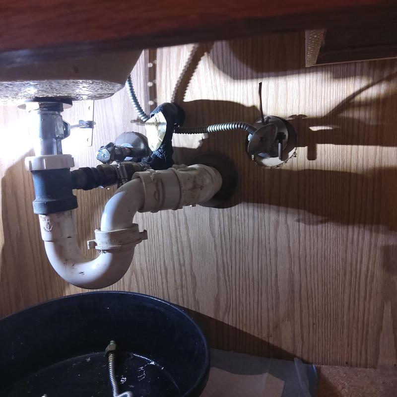 Plumb Shield Plumbing LLC replumbed a kitchen in Fort Worth, Texas. The work included replacing the drain and wall piping, installing a garbage disposal, connecting all tubular drains with a cleanout, and tying the system back into the existing vent.