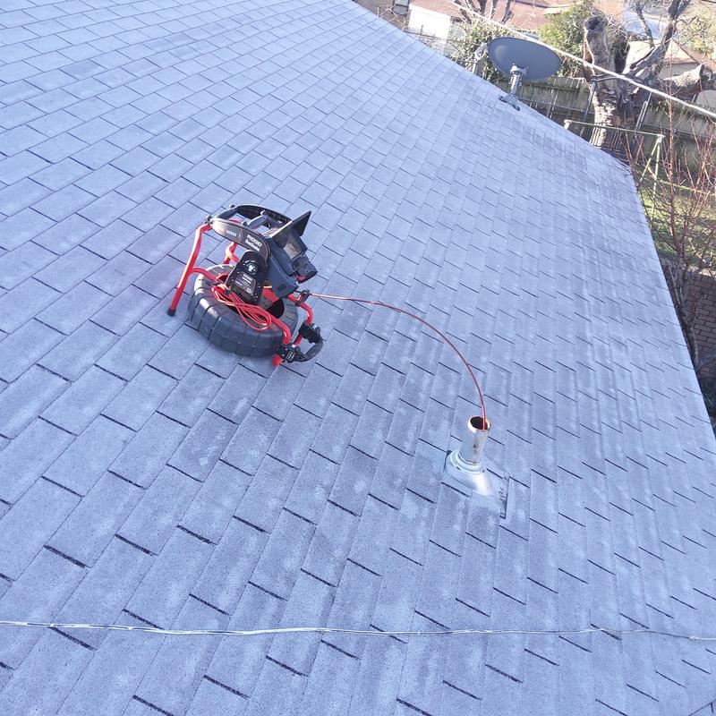 Plumb Shield Plumbing jetted a clogged kitchen line through a roof vent and used a camera to inspect the pipe in Fort Worth, Texas. This process clears blockages and checks for pipe damage or buildup to support proper water flow.