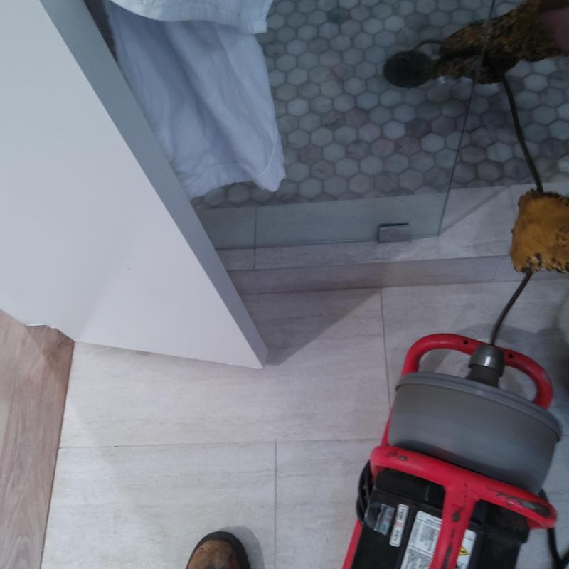 Plumb Shield Plumbing LLC cleared a clogged shower drain using a roto-rooter machine in Fort Worth, Texas. The team removed blockages to restore proper water flow in the restroom plumbing system.