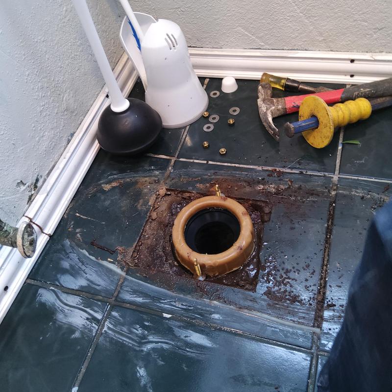 Plumb Shield Plumbing LLC cleared a blocked sewer line during an emergency call in Fort Worth, Texas. The plumber removed the toilet to access the pipe and replaced the damaged flange, restoring proper drainage.