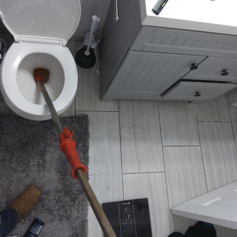 Plumb Shield Plumbing LLC resolved an emergency stoppage in Fort Worth, Texas. The team cleared a blockage by running a cable through a 90-degree bend and then pulled and reset the toilet to restore proper function.