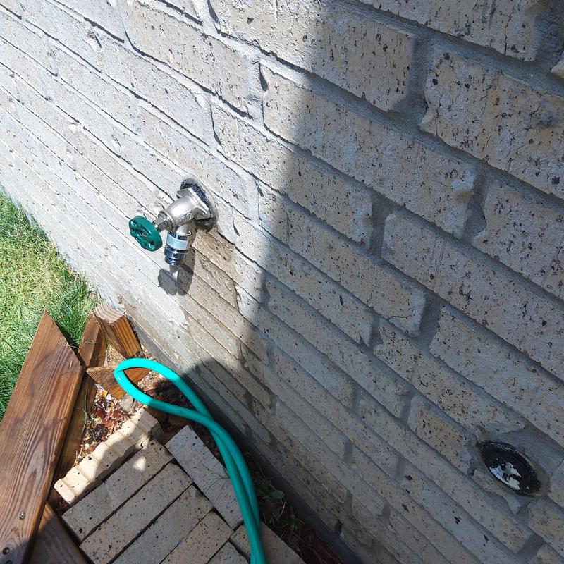 Plumb Shield Plumbing LLC installed a new outdoor hose bib on the back wall of a property in Fort Worth, Texas. This upgrade allows for easier outdoor water access and supports garden or exterior cleaning tasks.