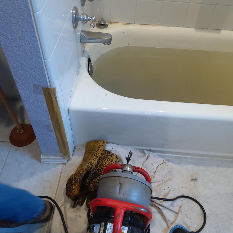 Plumb Shield Plumbing LLC cleared a clogged bathtub drain by accessing the overflow plate in Fort Worth, Texas. The team used professional equipment to remove the blockage and restore proper drainage.
