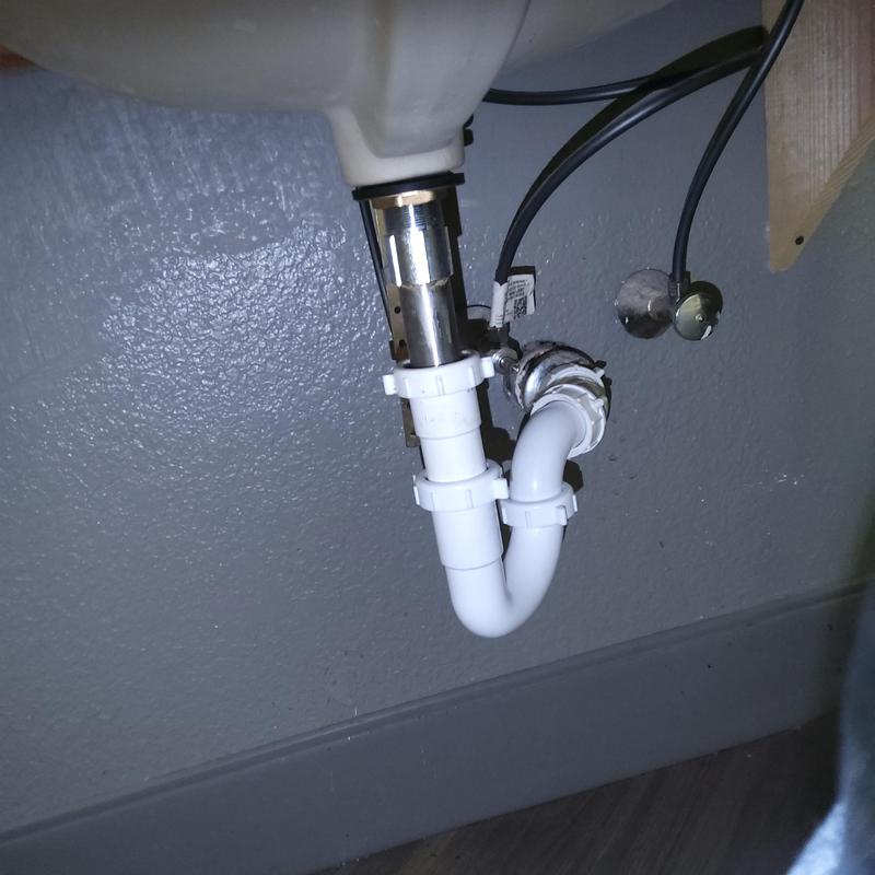 A plumber in Fort Worth, Texas removed an old lavatory faucet, installed a new one with a pop-up assembly, and reset the P-trap. This service restored proper sink function and ensured a secure drain connection.
