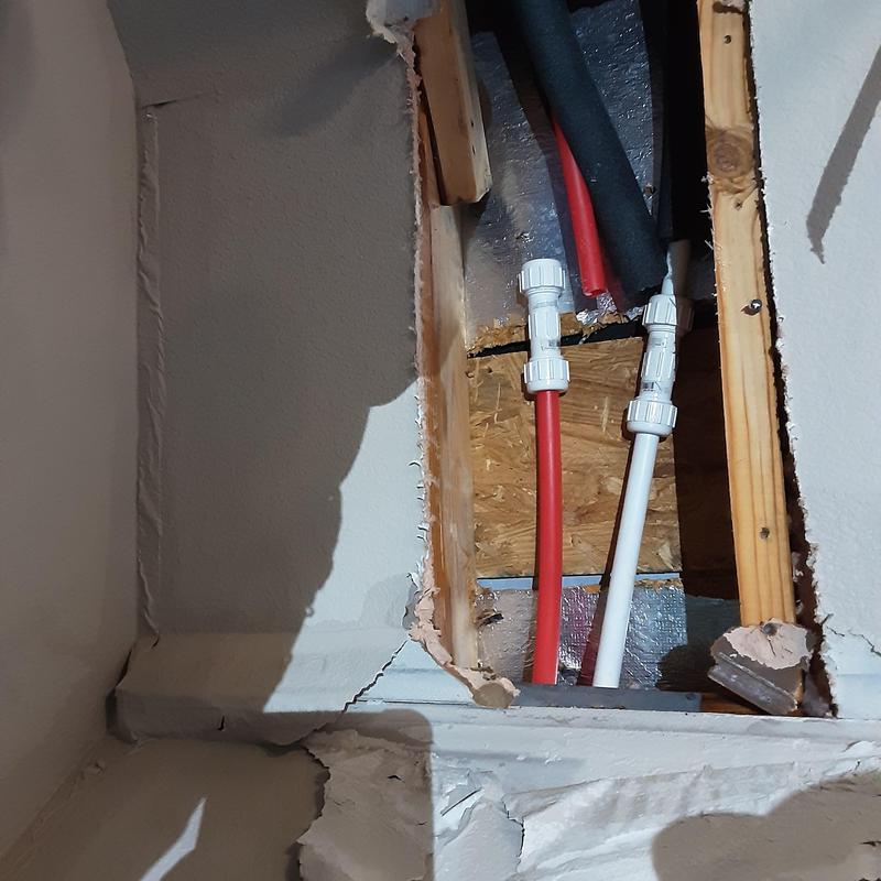 Plumb Shield Plumbing LLC completed an emergency reroute of a leaking 1/2-inch copper water line above ground due to a slab leak in Fort Worth, Texas. The team replaced the affected section to restore water flow and prevent further foundation damage.