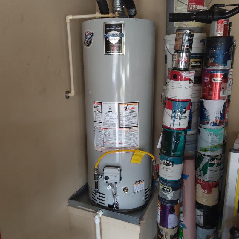 Plumb Shield Plumbing LLC replaced a leaking 50-gallon gas water heater in Fort Worth, Texas. The team removed the damaged unit and installed a new one, restoring reliable hot water service for the property.